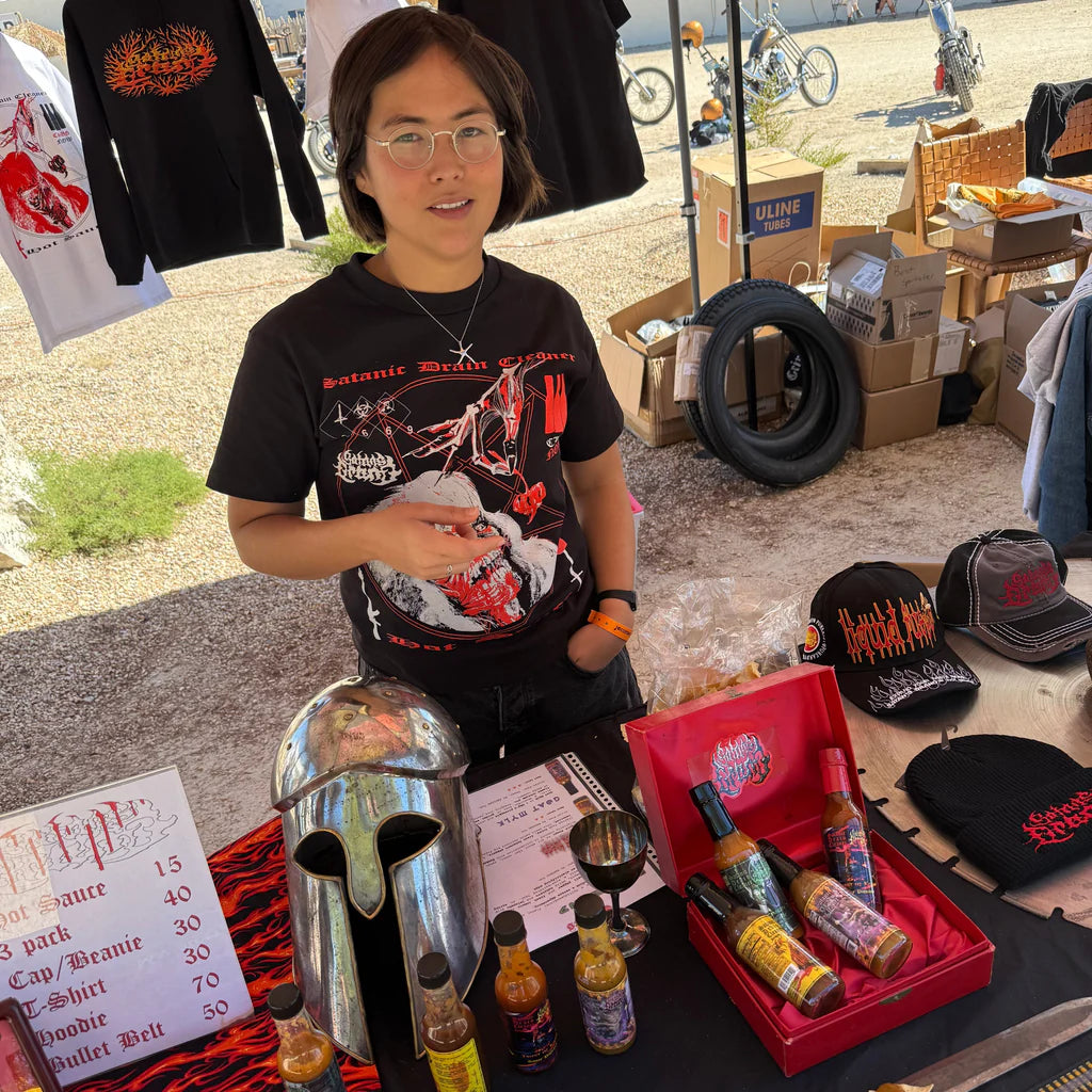 Screenprinted in USA on American Apparel 1301 for Satan's Drano. Woven label.