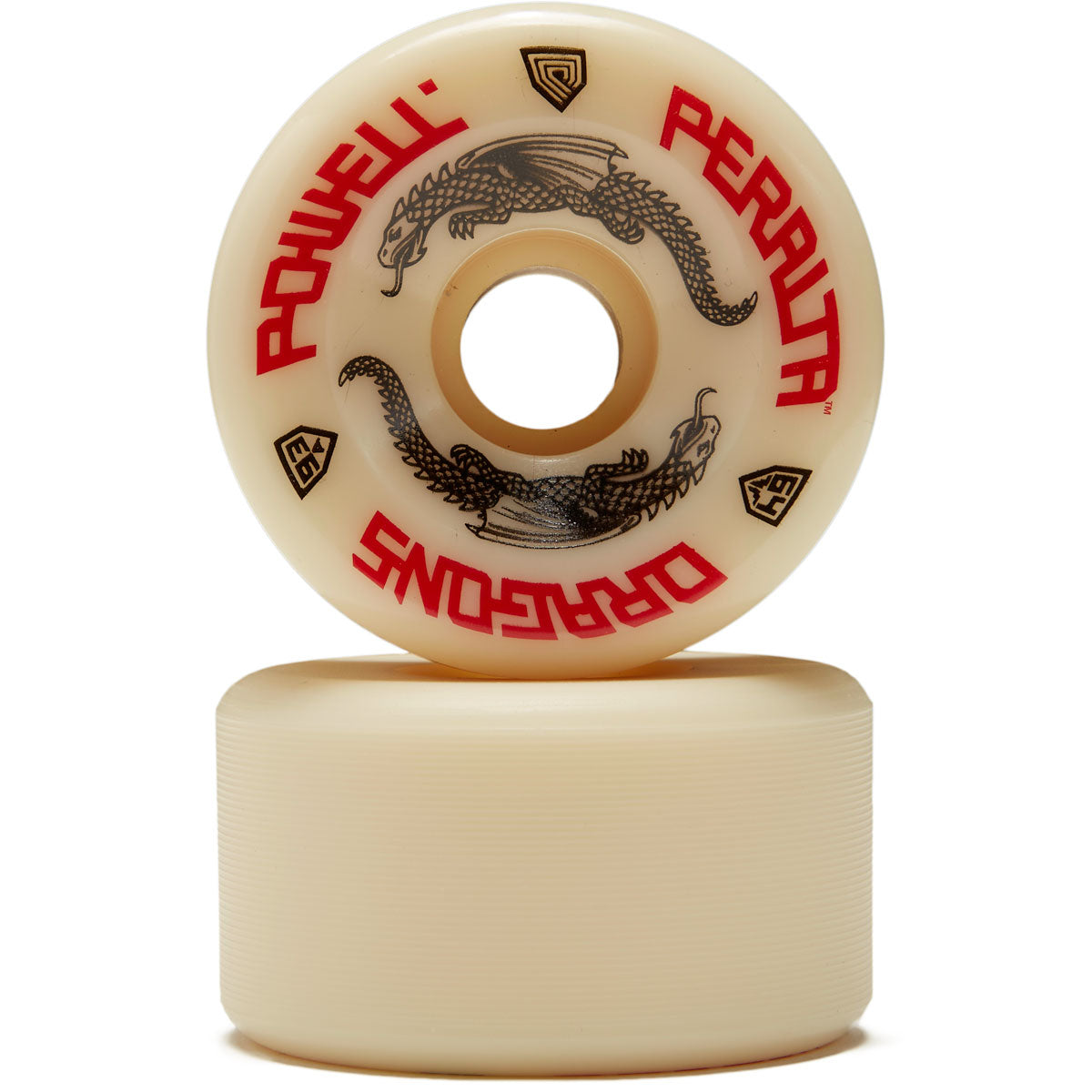 About Dragon Formula: The amazing new Dragon Formula™ (DF) Urethane used to create these wheels is another industry leading innovation from Powell • Peralta. DF-93A Dragons will not only roll over rough terrain, but also grip and slide like 99A and 101A wheels do, so that you can do all your normal tricks and more on the greater range of skate terrains made skateable by its softer 93A hardness.