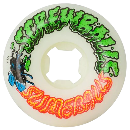 Slimeballs Screw Balls Speed Balls wheels feature graphic art by Falu @falucarolei based on the original art by Jim Phillips on a hard, conical edge shape for firm coping lock, wide riding surface and high performance 99a urethane.